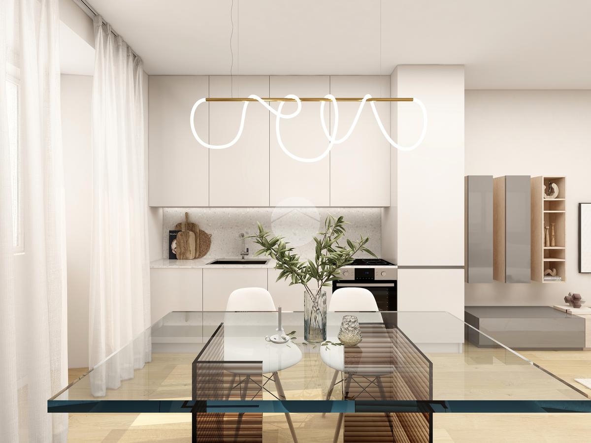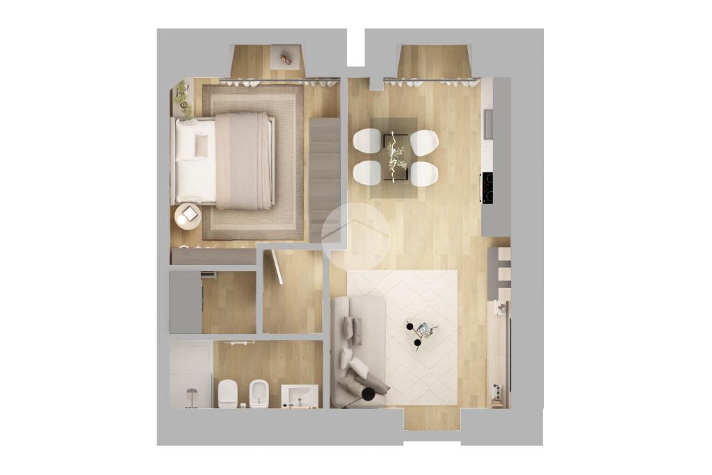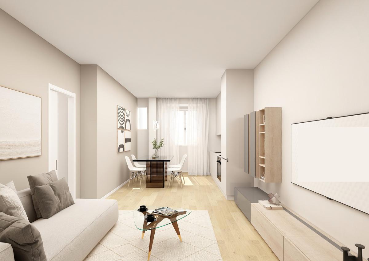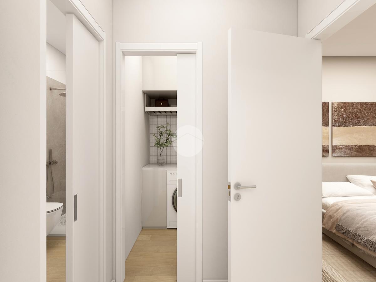 La disposizione interna comprende un soggiorno luminoso con angolo cottura, una camera da letto, un bagno e una comoda lavanderia. Gli spazi sono stati progettati per garantire comfort e praticità, con ambienti ben distribuiti e facilmente personalizzabili.